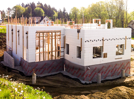 A High Performance Home with a Quad-Lock ICF foundation. Upon completion the blower door test for this home came in at 0.494 ACH!